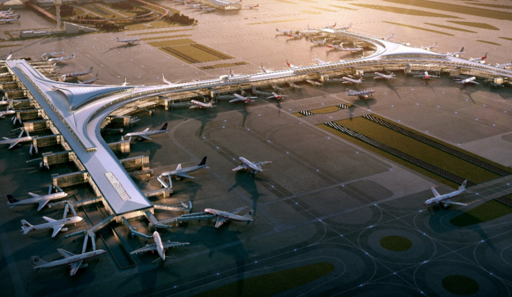 交通中心位于T1航站樓東側(cè),總面積約80萬平方米,自東向西。自上而下將機(jī)場航站樓、磁浮、高鐵、地鐵、長途車站、公交站、出租車上客點(diǎn)及社會(huì)停車庫等交通設(shè)施集約布局于一體。工程地下室抗拔樁采用機(jī)械連接竹節(jié)樁7萬米。